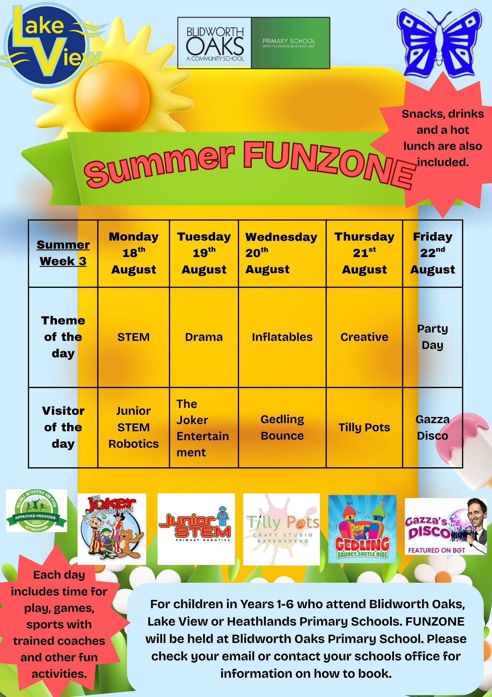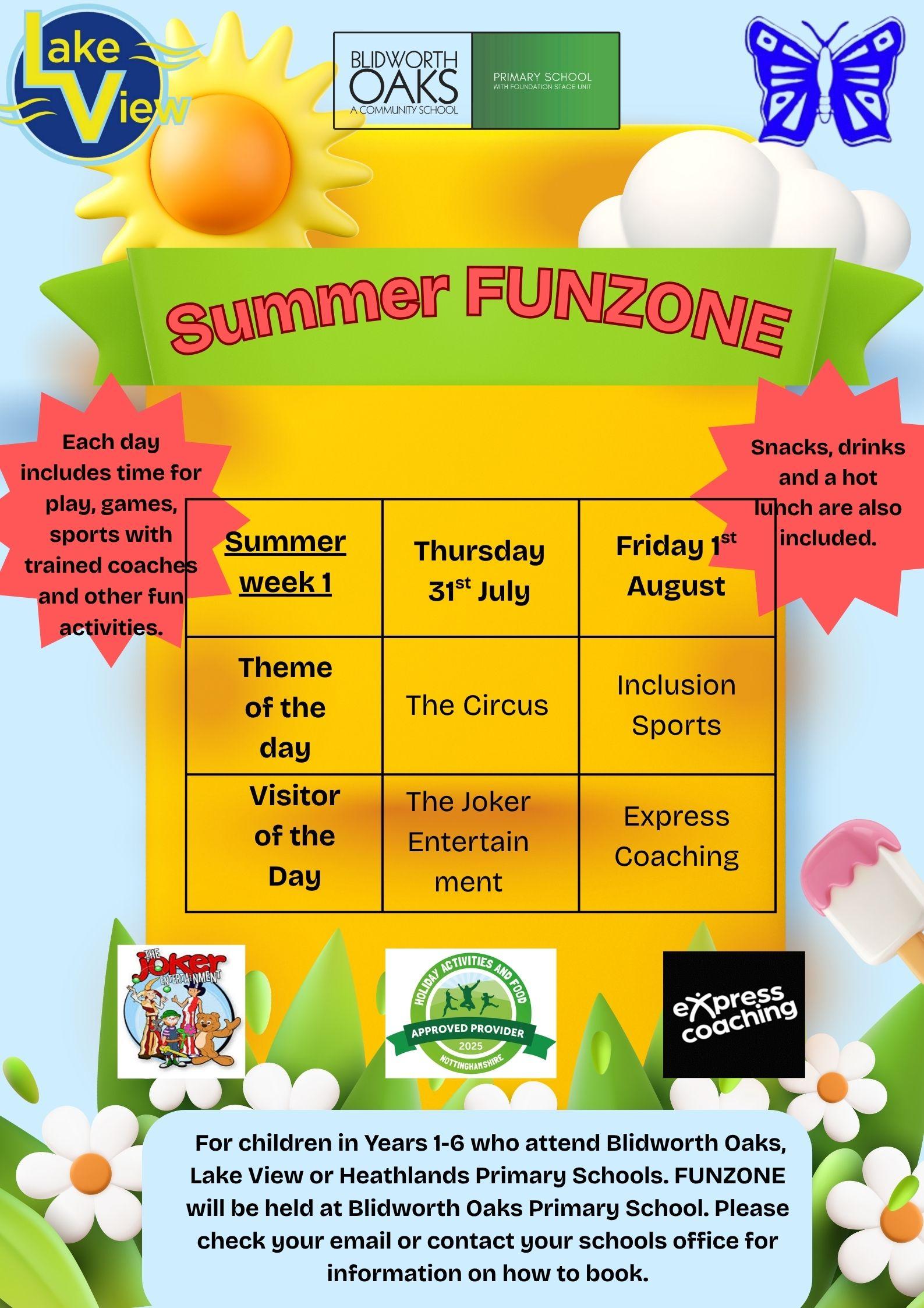 Our new holiday provision - The Holiday FUNZONE! - is for children in Years 1-6 at Blidworth Oaks, Lake View or Heathlands Primary Schools.